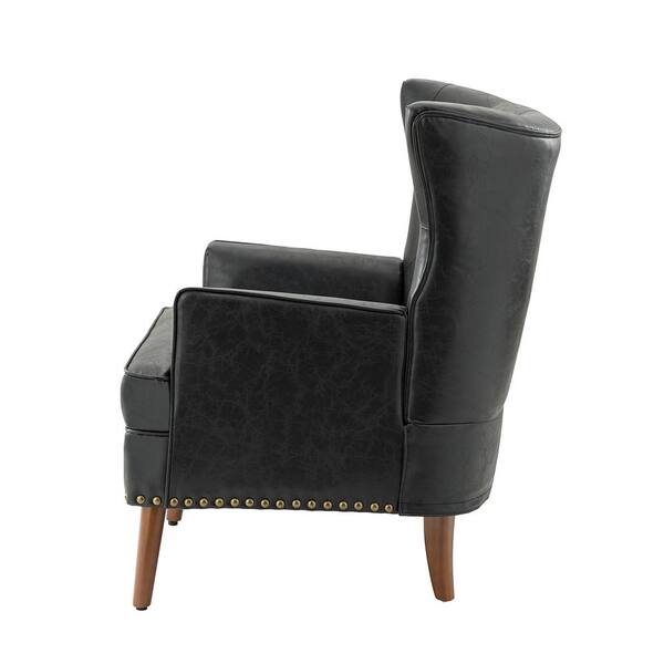 Minerva Vegan Leather Black Armchair with Nailhead Trim (Set of 2)