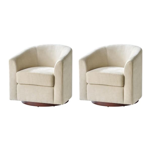 Miriam Beige Modern Swivel Accent Chair with Solid Wooden Base, (Set of 2)