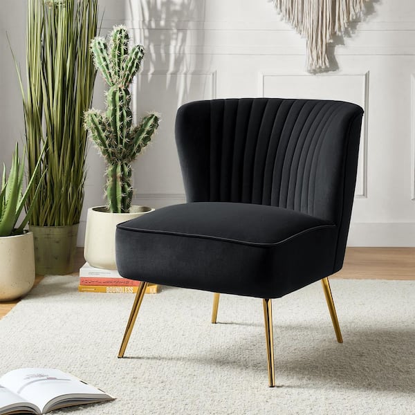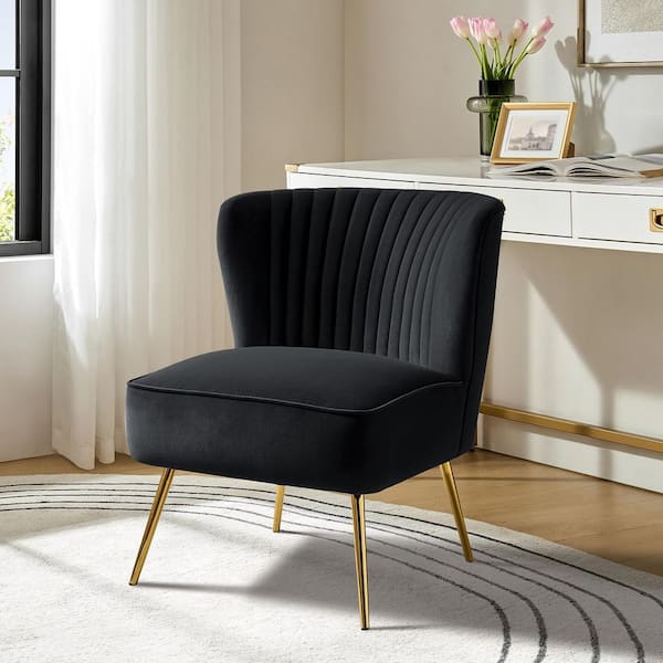 Monica Modern Black Velvet Comfy Living Room Side Chair with Golden Metal Legs