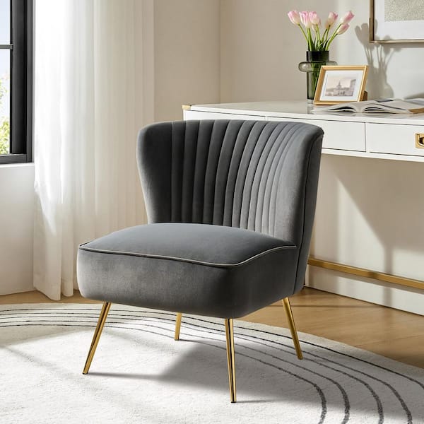 Monica Modern Grey Velvet Comfy Living Room Side Chair with Golden Metal Legs