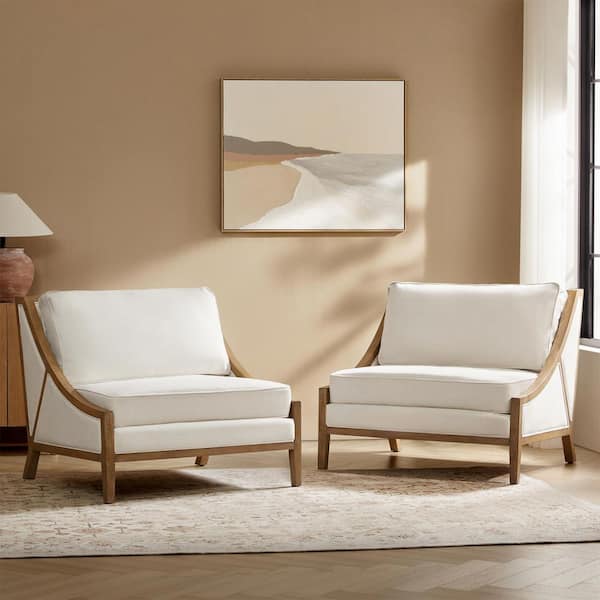 Nan Ivory Accent Armchair with Solid Wood Legs Set of 2