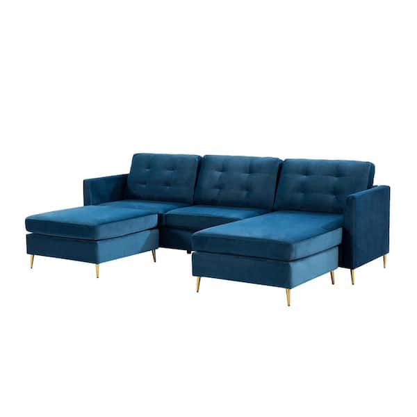 Nasamonia 72 in. Wide Navy Polyester Reversible Sofa and Chaise with Ottoman