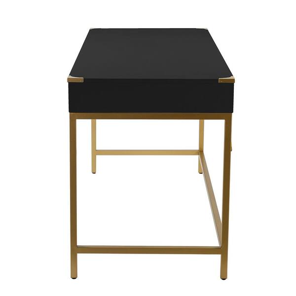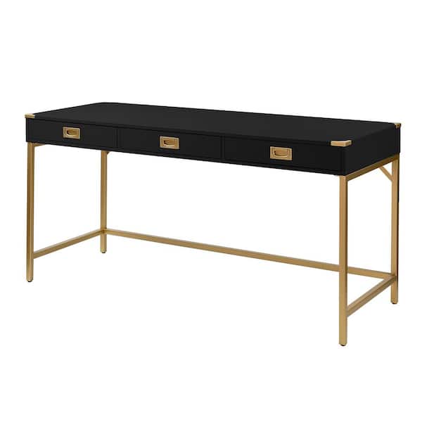 Nicole 62.75 in. Black Office Writing Desk with Gold Metal Frame