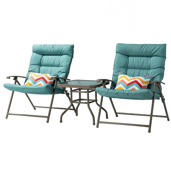 Nod 3-Piece Metal Iron Outdoor Bistro Set with Blue Cushions