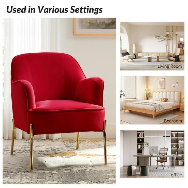 Nora Modern Red Velvet Accent Chair with Gold Metal Legs