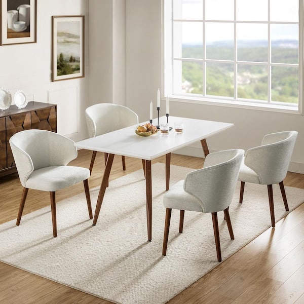 Nuria Beige Upholstered Dining Chair with Wing Back and Solid Wood Tapered Legs (Set of 4)