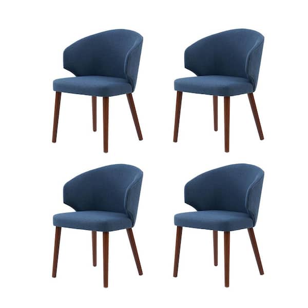 Nuria Navy Upholstered Dining Chair with Wing Back and Solid Wood Tapered Legs Set of 4