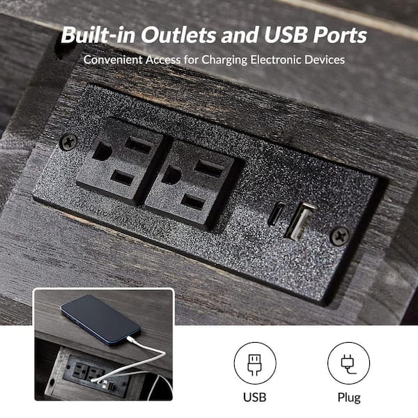 Olga Charcoal 26"W 3-Drawer Rattan Design Solid Wood Nightstand with Built-in Outlets and USB Ports