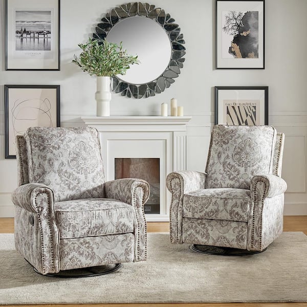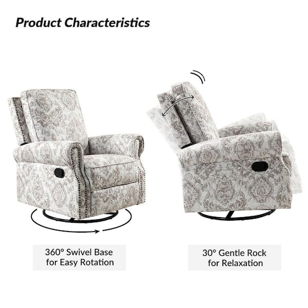 Orlando Traditonal Manual Livingroom Glider Rocker Nursery Recliner with Swivel Base and Nailhead Trim set of 2 - Beige