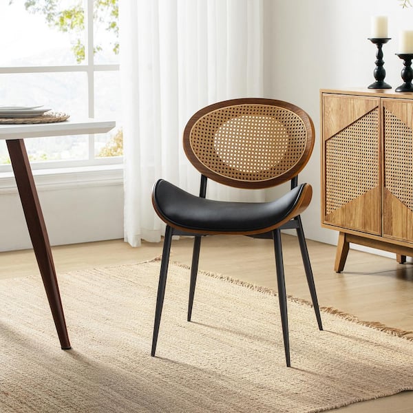 Pablo Black 20.75 in. W Modern Dining Chair with Rattan Woven Back (Set of 2)