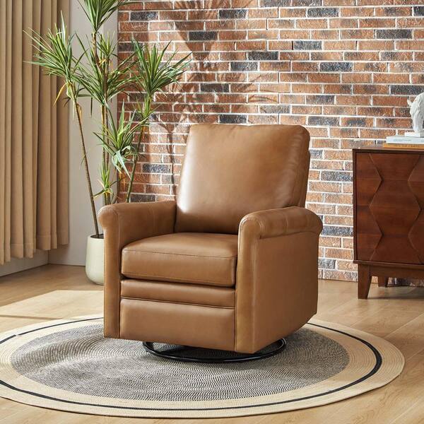 Pablo Camel Modern Genuine Leather Swivel Rocker Chair Set of 2