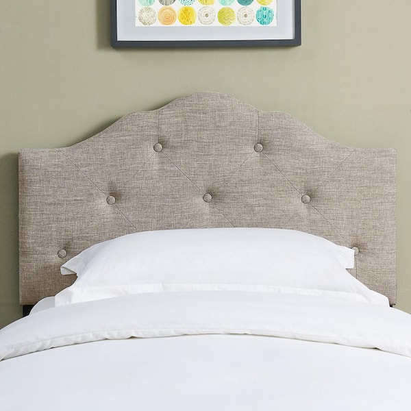 Pilar Beige Upholstered Tufted 40.15 in. Wide Headboard with Diamond Button and Wooden Legs