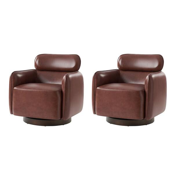 Pius Brown Modern Swivel Genuine Leather Barrel Chair with Adjustable Headrest (Set of 2)
