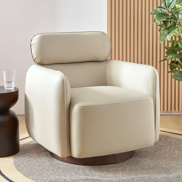 Pius White Modern Swivel Genuine Leather Chair with Adjustable Headrest