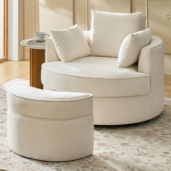 Prima Beige Polyester Swivel barrel Chair with Storage Ottoman