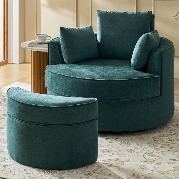 Prima Green Polyester Swivel barrel Chair with Storage Ottoman