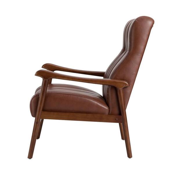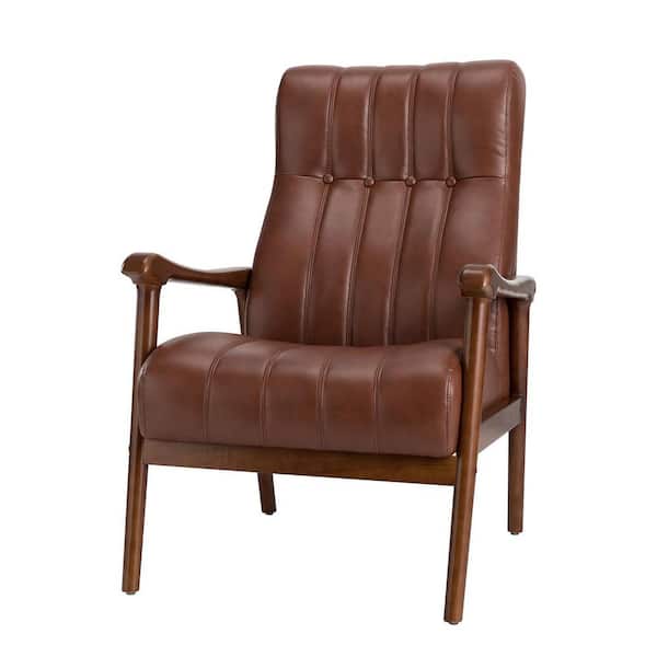 Raffaele Brown Square Vegan Leather Armchair with Solid Wood Legs