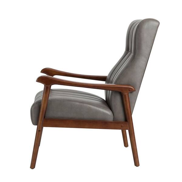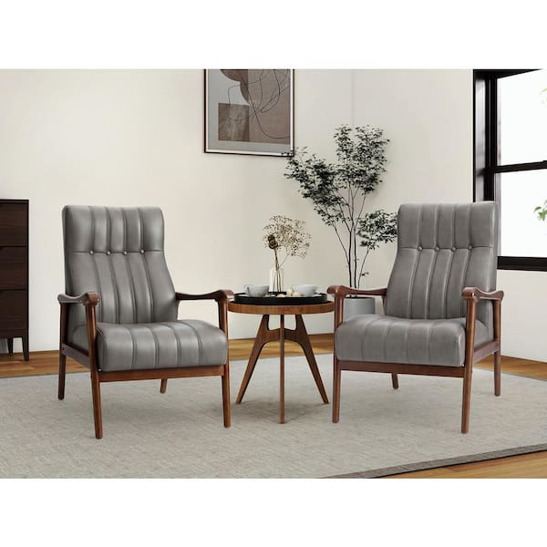 Raffaele Grey Vegan Leather Armchair with Solid Wood Legs (Set of 2)