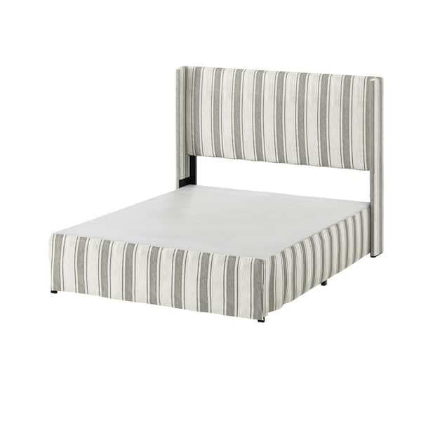 Raymond 2 Piece Strip Wingback Design King Bedroom Set with Metal Platform Bed Frame