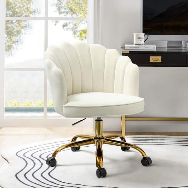 Rebeca Ivory Swivel Velvet Task Chair with Tufted Back
