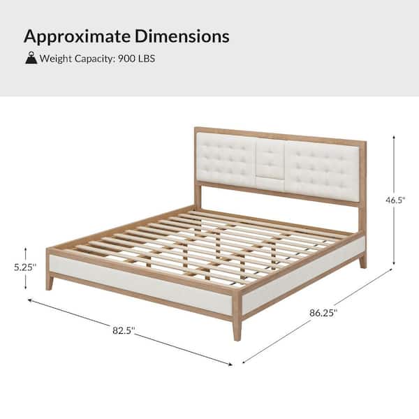 Romeo Beige Wood Frame King Platform Bed with Upholstered Headboard
