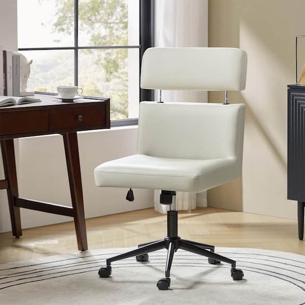Ruby Faux Leather Ergonomic Office Chair in Ivory with Swivel and Tilting