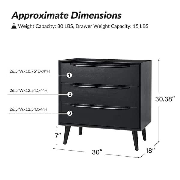 Sabine Black 30.38 in. 3-Drawer Accent Cabinet/Sideboard with Built-in Power Outlet