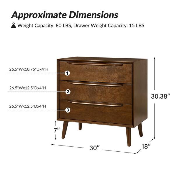 Sabine Walnut 30.38 in. 3-Drawer Accent Cabinet/Sideboard with Built-in Power Outlet, set of 2.