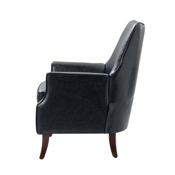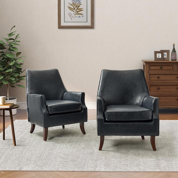 Scylla Vegan Leather Navy Armchair with Solid Wood Legs (Set of 2)