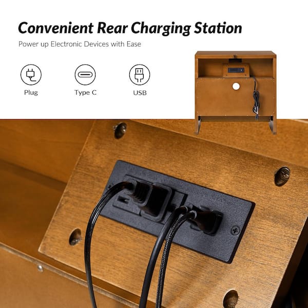Selmo Acorn 24 in. W 2-Drawer Modern Nightstand with Built-In Outlets