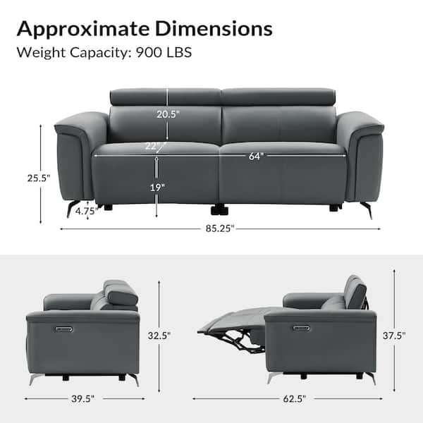 Serena 85 in. Flared Arm 2-piece Genuine Leather Sectional Sofa in. Light Gray with Power-Assist and USB Ports
