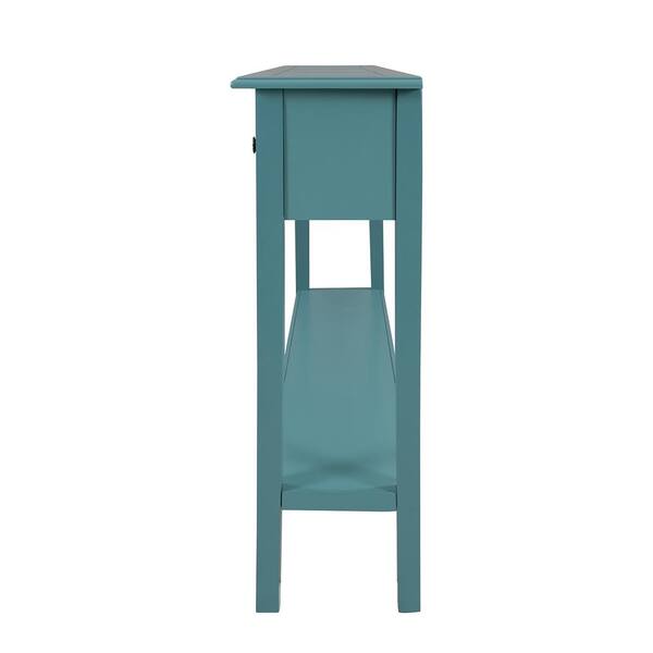Stella 60 in. Teal Wood Rectangle Console Table with Shelves