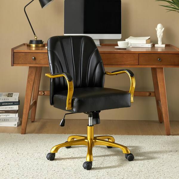 Stephanie Leather Wood Swivel Tilting Task Chair in Black with Channel Tufted Back