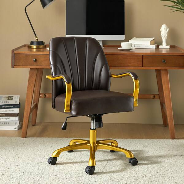 Stephanie Leather Wood Swivel Tilting Task Chair in Brown with Channel Tufted Back