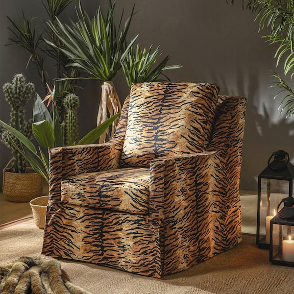 Stewart Tiger Traditional Slipcovered Swivel Chair with Sloped Armrest
