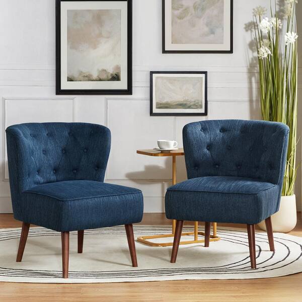 Storace Contemporary Navy Wingback Side Chair with Button Tufted Set of 2