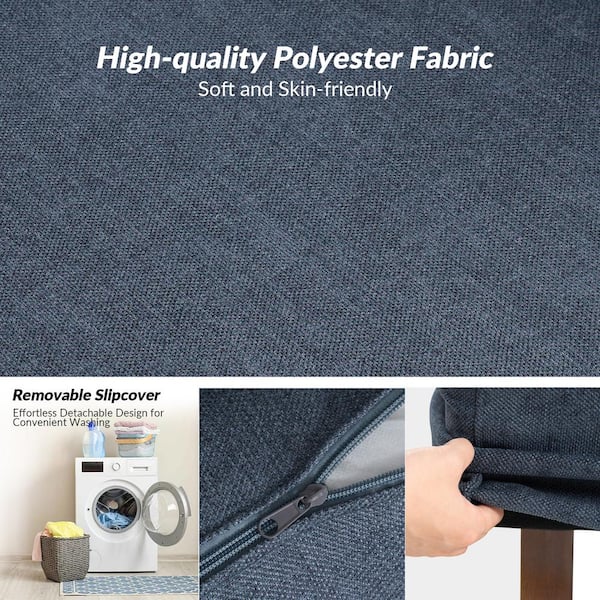 Sylvia Blue Modern Oversized Removable Slipcovered Chair Solid Wood Legs Armchair with Ottoman Set of 2