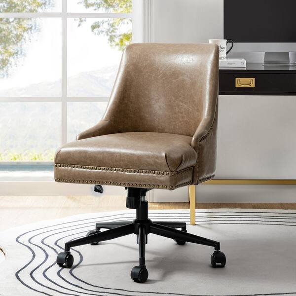 Taurino Contemporary Taupe Leather Swivel Height-adjustable Task Chair with Nailhead Trim