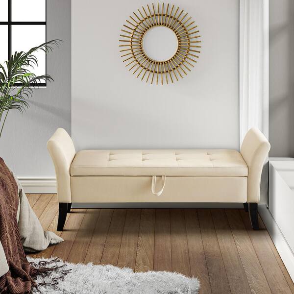 Telmo Contemporary Beige Velvet Wide Bench with Storage