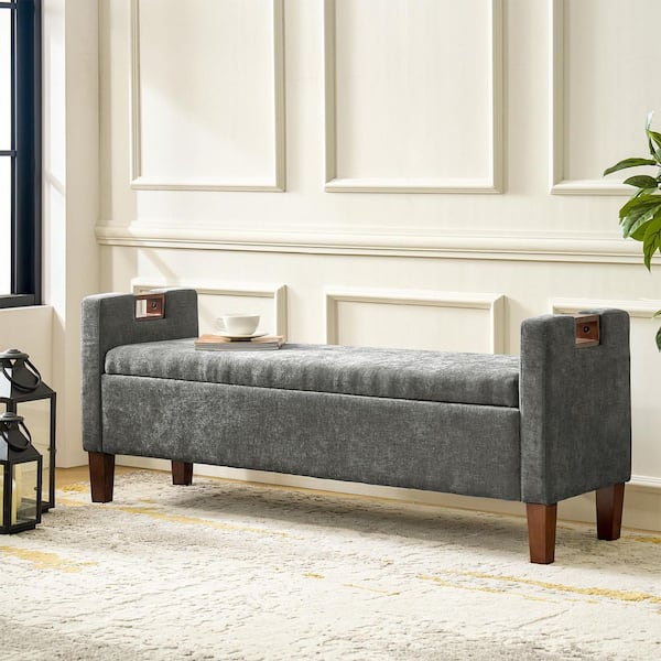 Telmo Gray Waterproof Storage Bench with Solid Wood Legs