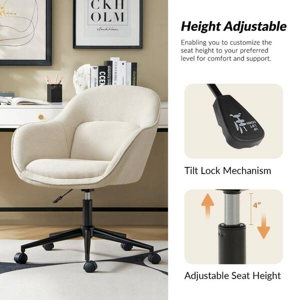 Teodoro Beige 27 in. W Modern Polyester Office Chair Curved Backrest with Height Adjustable and Metal Base