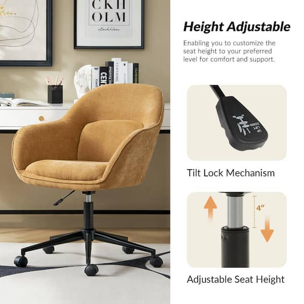 Teodoro Mustard 27 in. W Modern Polyester Office Chair Curved Backrest with Height Adjustable and Metal Base