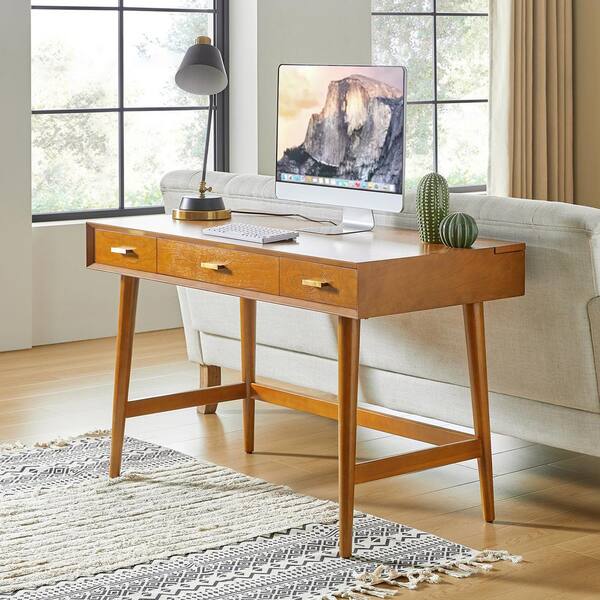 Tommy 48 in. Rectangular Acorn Wood 3-Drawer Computer Desk with Cable Management and Built-In Storage