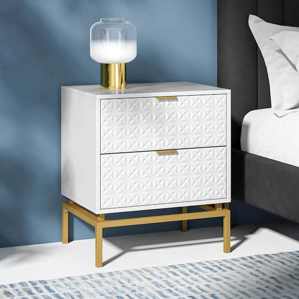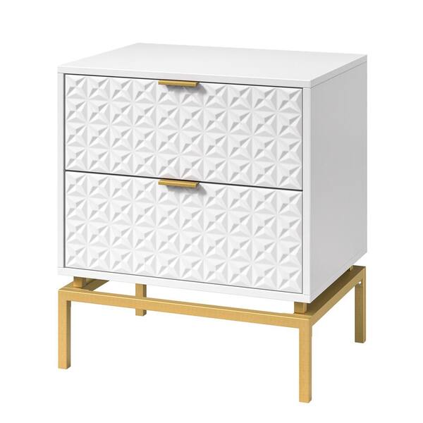 Vico White 25 in. Tall 2-Drawer Nightstand with Metal Hardware