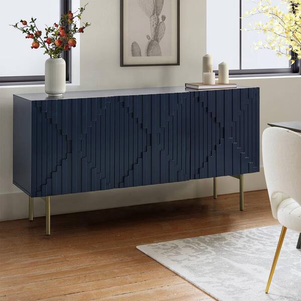 Victoria Navy Modern 58 in. Wide Sideboard with Cable Management, Adjustable Feet