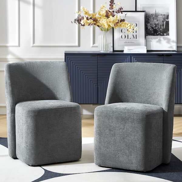 Warner Grey Modern Armless Dining Chair with Wheels Set of 2