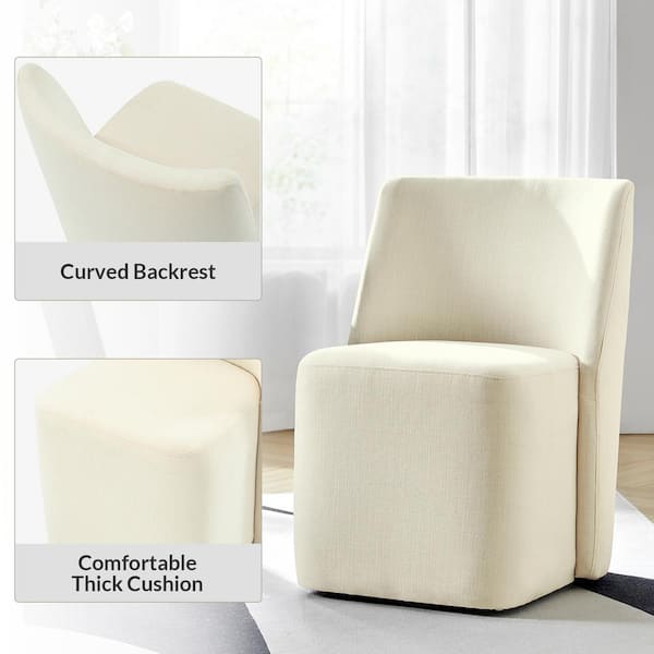 Warner LInen Modern Armless Dining Chair with Wheels Set of 2