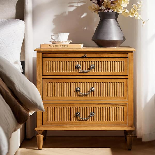Weer Acorn Farmhouse Solid Wood 3-Drawer 23.6 in. W Nightstand
