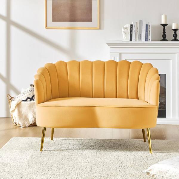 Yeran Velvet 50.2 in. Mustard 2-Seats Loveseat with Flower Shaped Back Design