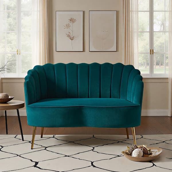 Yeran Velvet 50.2 in. Teal 2-Seats Loveseat with Flower Shaped Back Design